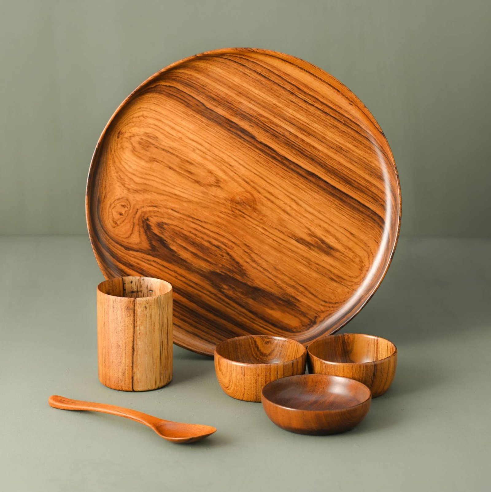 Redefine your dining experience with Tridhaβs premium handcrafted teakwood dinner set. Each piece is carefully designed and polished to highlight the natural beauty and texture of teakwood, bringing warmth, elegance, and sustainability to your table. Perfect for those who appreciate artisanal craftsmanship and eco-friendly dining essentials.