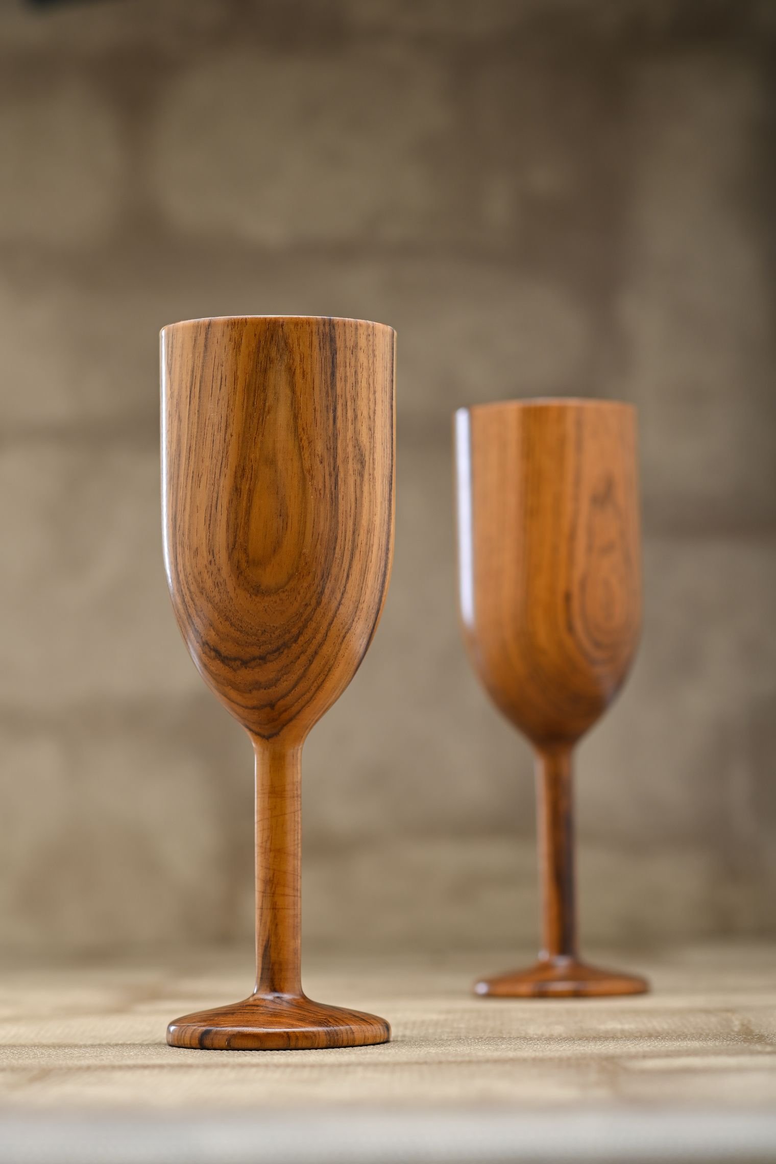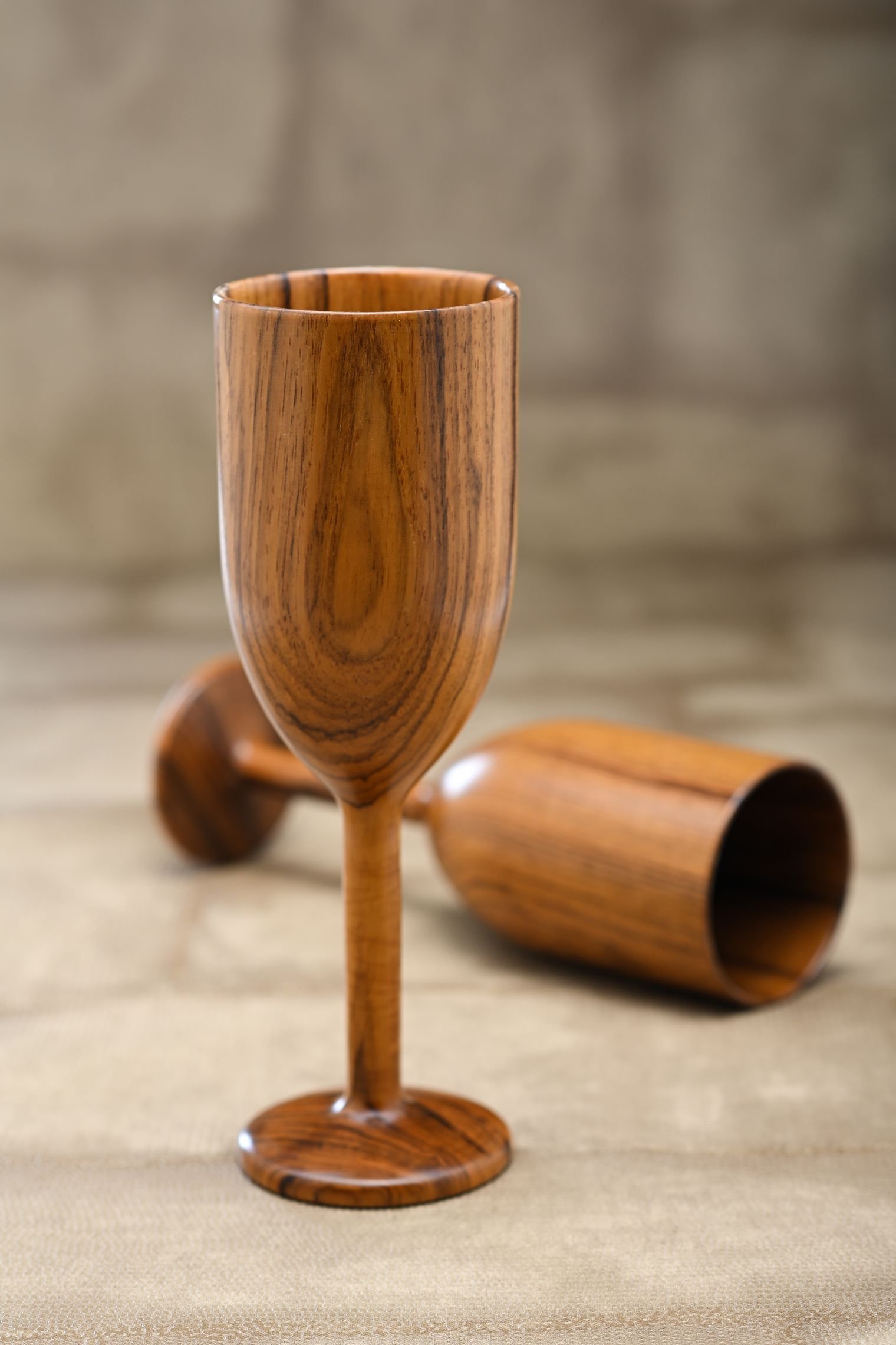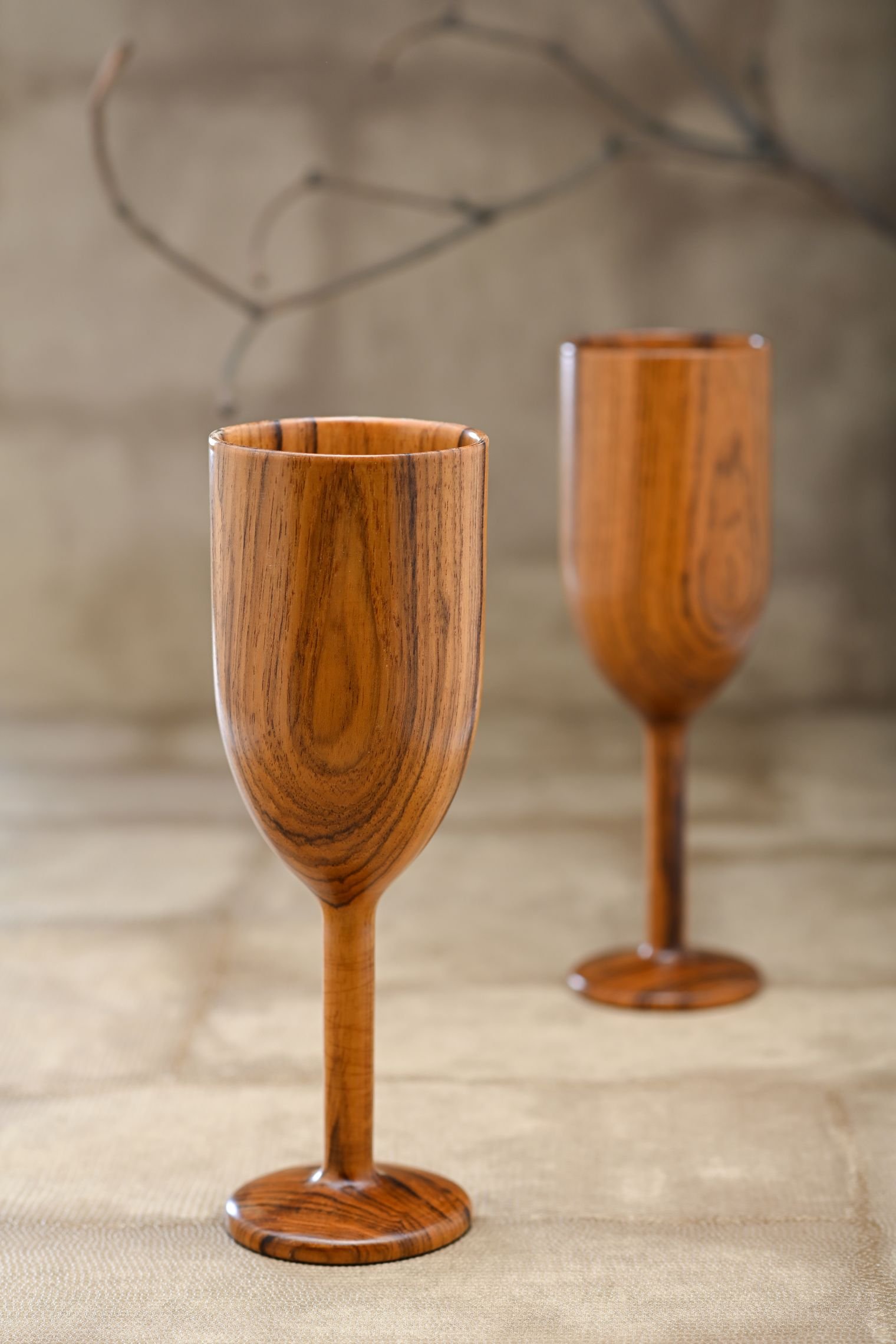 Raise a toast to timeless craftsmanship with Tridha’s handcrafted teakwood wine glasses. Designed with an elegant silhouette and smooth finish, each glass reflects the warmth and richness of natural teakwood. Perfect for serving wine, mocktails, or juices, these glasses bring a rustic yet refined charm to your dining and celebration moments.